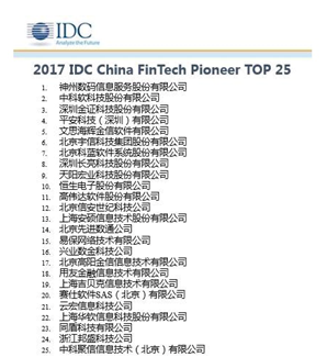 由國際知名信息產(chǎn)業(yè)研究機(jī)構(gòu)IDC China 發(fā)起的2017 IDC China FinTech Pioneer Top 25評選日前揭曉,安然科技憑借在金融科技領(lǐng)域的突出成績成功入圍名單,排名第四。評選結(jié)果IDC將在2017年8月25日主辦的“2017中國金融行業(yè)轉(zhuǎn)型與創(chuàng)新高峰論壇暨頒獎典禮”上正式公布。