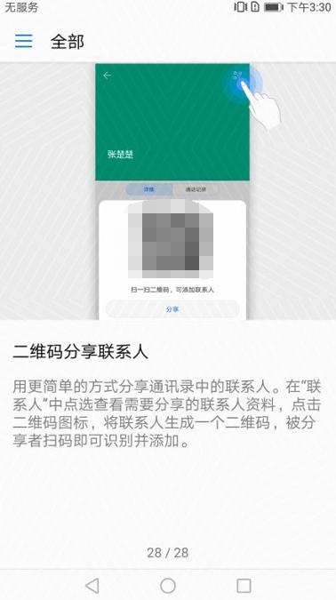 2 系列的“二維碼分享聯(lián)系人”功能,讓你用更簡單的方式分享通訊錄中的聯(lián)系方式。在“聯(lián)系人”中點選查看需要分享的聯(lián)系人資料,點擊二維碼圖標,將聯(lián)系人生成一個二維碼,被分享者只要一鍵掃碼即可識別并添加。如此高效潮流的黑科技功能,讓職場人處事干脆利落倍兒有面子。