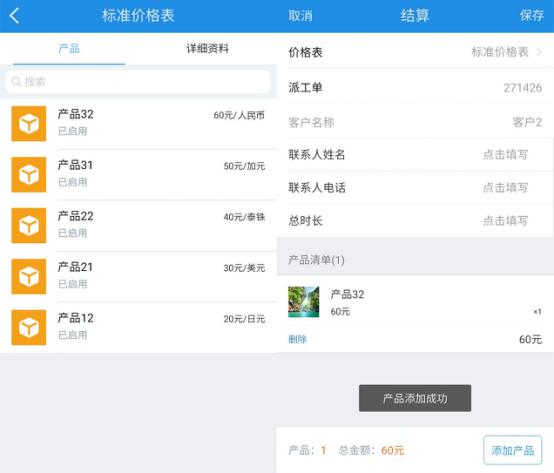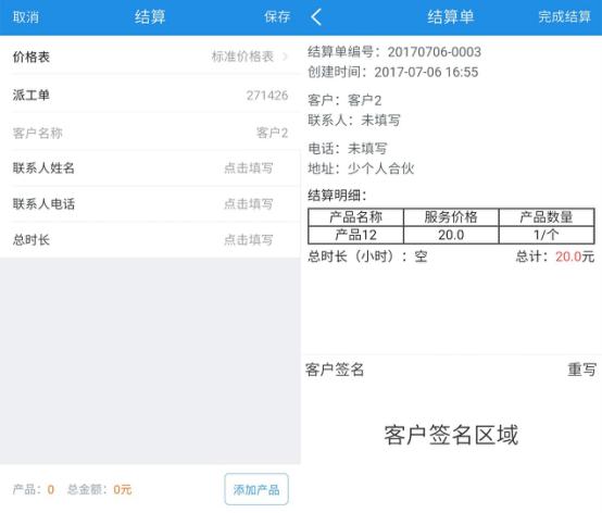 辦事結(jié)束后進行結(jié)算,現(xiàn)場云App中,工程師現(xiàn)場辦事可以工時結(jié)算,也可以安置維修等項目進行結(jié)算收費。銷售易銷售云中的產(chǎn)品價格列表集成在現(xiàn)場云中,工程師可將辦事與配件的尺度價格表出示給客戶,價格透明,消滅亂收費、亂加項目、亂換零件等安置售后惡劣現(xiàn)象。