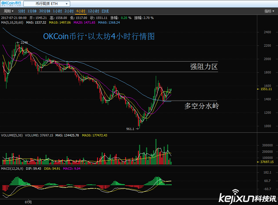 OKCoin幣行分析師稱,日內來看, 4 小時級別,均線系統(tǒng)(5、10、20)多頭擺列格局重歸完好狀態(tài),價格在上破重要壓力位時出現(xiàn)了明顯的成交量放大現(xiàn)象,同時MACD指標多頭動能柱再次增強,本級別走勢已經明顯轉多; 1 小時級別,價格昨日靠近MA60 時獲得支撐有效,價格開始加速上漲,價格在高位再次放出巨量,短期不宜重倉參與。