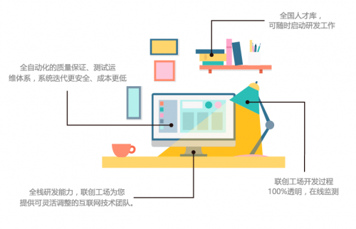 優(yōu)勢三:項目平臺化實(shí)施。聯(lián)創(chuàng)工場可同時并行開發(fā)20+中型互聯(lián)網(wǎng)項目,項目交付成功率100%,業(yè)務(wù)資產(chǎn)、數(shù)據(jù)資產(chǎn)、供應(yīng)商資產(chǎn)持續(xù)沉淀,規(guī)模化研發(fā)能力已得到實(shí)際驗(yàn)證。聯(lián)創(chuàng)工場是國內(nèi)唯一實(shí)現(xiàn)軟件全生命周期進(jìn)行平臺化管控的外包平臺,實(shí)現(xiàn)了平臺化自主研發(fā)、平臺化管控及平臺化交付,使得開發(fā)成本低30%以上,開發(fā)速度快30%以上。