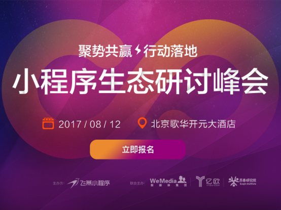 最新消息,2017第一屆小程序生態(tài)研討峰會將于8月12日在北京歌華開元酒店召開。這是由專業(yè)的微信小程序技術辦事商天馬飛燕聯(lián)合WeMedia新媒體集團、億歐平臺、蘇秦會等多家公司共同發(fā)起并主辦的小程序行業(yè)會議,旨在凝聚移動互聯(lián)網相關從業(yè)者和喜好者,研討和共同構建小程序健康發(fā)展生態(tài)鏈。
