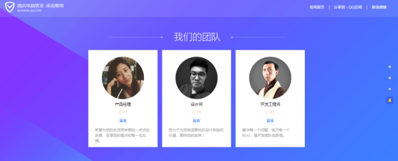 在桌面整理官網(wǎng)的新頁面中,產(chǎn)品幕后團隊首次公開。產(chǎn)品經(jīng)理、設(shè)計師和開發(fā)工程師三種角色現(xiàn)身,通過增設(shè)的留言系統(tǒng)與用戶溝通,給予用戶“面對面交流”的親和感。使用桌面整理的用戶可以針對產(chǎn)品體驗和期望暢所欲言,團隊成員將選擇跟自身相關(guān)的內(nèi)容對用戶的留言進行回復(fù)和互動。用戶可以在官網(wǎng)頁面直接體驗相關(guān)功能。下載桌面整理獨立版或通過電腦管家直接進行操作后,與團隊成員分享使用感受或提出建議,即有可能成為幸運用戶,獲得30Q幣。