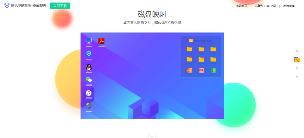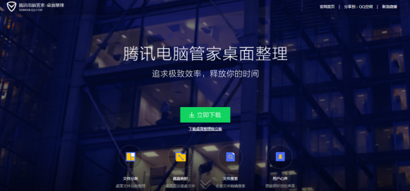 騰訊電腦管家桌面整理功能自上線以來,幫手用戶大大提升工作效率,,獲得了很多用戶的喜愛。電腦管家團隊為了進一步提升用戶體驗,近期上線了全新桌面整理官網(wǎng)頁面,廣大用戶可以在官網(wǎng)頁面中直接體驗炫酷的桌面整理大法, 10 秒鐘內(nèi)即可了解“文件分類”、“磁盤映射”和“文件搜索”三大新功能。同時,為了更好傾聽用戶聲音,桌面整理團隊集體表態(tài),通過留言系統(tǒng)與用戶交流,進一步拉近與用戶的距離,了解用戶切實需求。