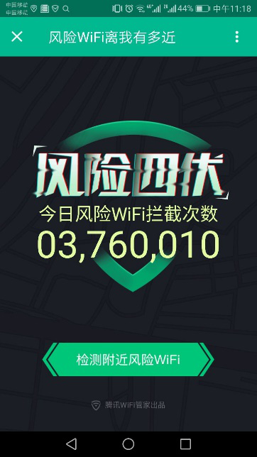(圖:騰訊WiFi管家支持一鍵檢測(cè)附近的風(fēng)險(xiǎn)WiFi)