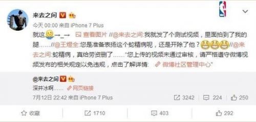 與此同時,微博方面雖然體現(xiàn)非節(jié)目類視頻不受影響,但其對用戶上傳內(nèi)容的審核力度也在不停加大。日前,微博CEO王高飛吐槽本身發(fā)段視頻拍到了本身的腿就被刪除了,笑罵其“蛇精病”。