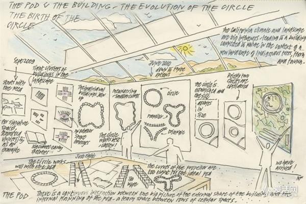 彼時已經(jīng)重疾纏身的喬布斯,展開了他為“像野草一樣瘋長”的蘋果設(shè)計的容納1.3萬人,全弧形玻璃樓、地下泊車場、6000顆樹、清潔循環(huán)能源的新藍(lán)圖。