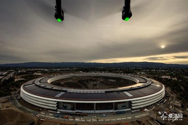 由世界上最大的曲面玻璃拼接而成的中心大樓,被幾千顆樹木包裹于整個蘋果公園的中央。