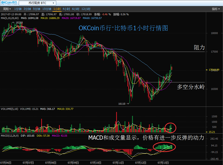 按照國內(nèi)知名的數(shù)字資產(chǎn)交易平臺OKCoin幣行的數(shù)據(jù)顯示,比特幣昨天(7月12日)價格呈現(xiàn)出先抑后揚的發(fā)展態(tài)勢,價格在亞市早盤10點時段跌至前低(16110)附近后止跌企穩(wěn),至收盤最高反彈至16824一線,最終以陽線報收。截止今日發(fā)稿前,反彈仍舊延續(xù)中,最新交投于16540附近。
