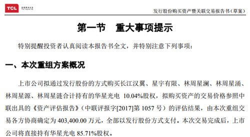 TCL集團(tuán)擬增持子公司華星光電股權(quán)至85.7% 交易價40億元
