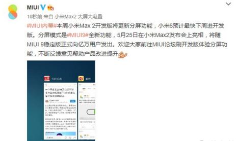 【TechWeb報道】7月12日消息,小米之前在發(fā)布會上體現(xiàn)MIUI支持“分屏模式”?,F(xiàn)在最新消息,MIUI 9將不才月正式發(fā)布,重要的是支持分屏功能,將隨MIUI 9不變版正式向億萬用戶發(fā)出。