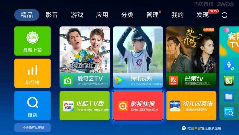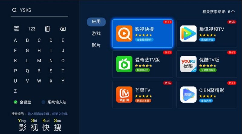 以上軟件均可在智能電視第三方應(yīng)用當(dāng)貝市場()中搜索安置,如搜索YSKS,即可安置運行影視快搜。最新版當(dāng)貝市場可通過U盤即可安置到智能電視設(shè)備上,當(dāng)貝市場安置包直接下載: