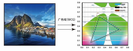 采劇院等級之RGBRGB六段式色輪設(shè)計, 色域表示100%符合國際HDTV的 REC.709 色域尺度