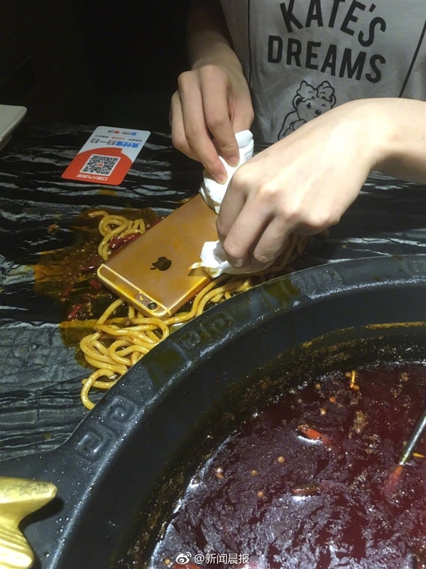 雖然不清楚這部iPhone到底有沒有損壞,但滿身的辣椒油基本上已經(jīng)宣告了它的“死刑”。別的,這頓火鍋可能也就這么浪費了。