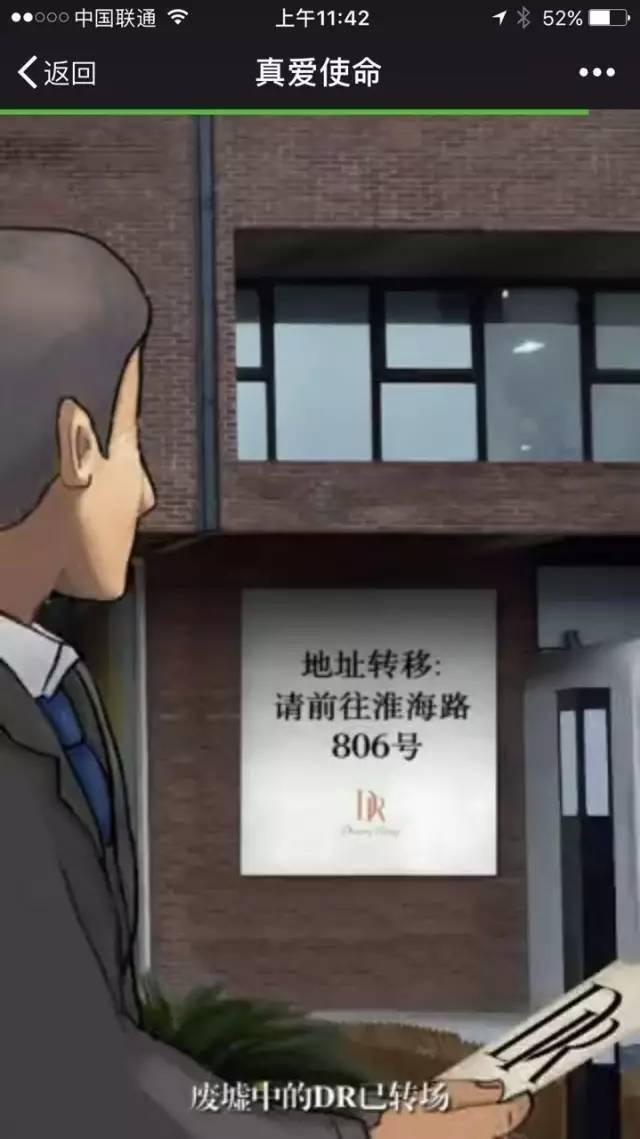 當(dāng)然,必定會(huì)也有不少人質(zhì)疑:DR鉆戒 的刷屏freestyle 廣告是否跑偏?終究就轉(zhuǎn)化率而言,這個(gè)刷屏廣告可能為零。因?yàn)閺V告傍邊提到的紅坊店面臨拆遷。但是,這或許真是DR鉆戒的高明之處,這條H5 廣告明顯不是沖著營(yíng)銷轉(zhuǎn)化率而來的,而是希望通過情節(jié)豐富的故事,借勢(shì)當(dāng)前正在流行的吳亦凡freestyle,以類似周杰倫極具感染力的嘻哈說唱風(fēng)格,讓人們記住了“DR鉆戒紅坊店面臨拆遷已經(jīng)轉(zhuǎn)場(chǎng)到淮海路 806 號(hào)”這個(gè)最核心的信息。