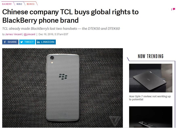 在黑莓的背后,是躊躇滿志的TCL,這一次黑莓的回歸能幫手TCL在中國市場搶奪到一塊蛋糕嗎?抑或只是另一場失敗的情懷悲???