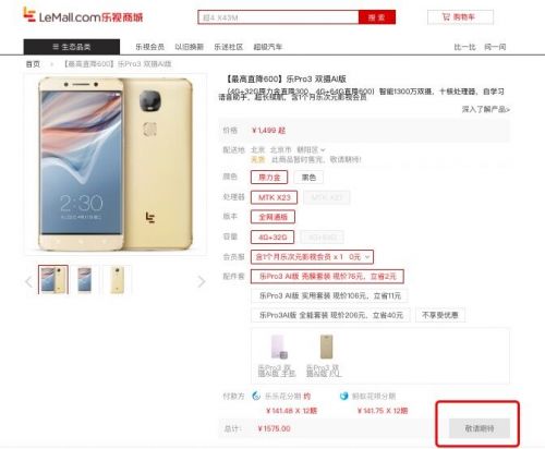 TechWeb查詢樂視商城發(fā)現(xiàn),截至發(fā)稿,樂視超級(jí)手機(jī)有6款系列產(chǎn)品,其中,樂Pro3雙攝AI版、樂S3、樂2、樂2Pro、樂Max2,五款產(chǎn)品均顯示”敬請(qǐng)期待”,無法加入購物車購買。僅有一款“樂Pro3精英版4GB+32GB魅麗金版本”正常在售。