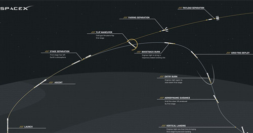 “獵鷹9號”一級火箭回收示意圖