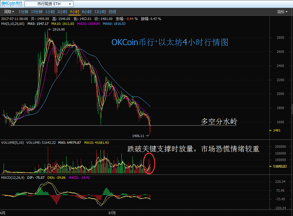 按照國內(nèi)知名的數(shù)字資產(chǎn)交易平臺OKCoin幣行的數(shù)據(jù)顯示, 7 月 10 日,幣行以太坊開盤價1692.00,最高價1710.00,最低價1551.10,收盤報于1563.51.截止收盤下跌7.74%,振幅10.24%。今日以太坊開盤價1565.00,基本平開。截止下午兩點擺布,以太坊價格成教育 1350 附近。
