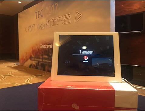 7 月 1 日, 2017 第十六屆北京國際消費(fèi)電子展覽會在北京國際會議中心隆重開幕。微信相框作為參展商表態(tài)了此次展會,并獲得了會場不雅觀眾和許多其他參展商的青睞與追捧。
