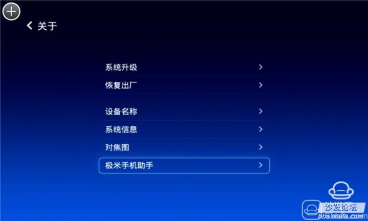 極米無屏電視 H1S通過手機(jī)遠(yuǎn)程安置第三方應(yīng)用,本教程適用于極米所有型號(hào)。【安置流程】①手機(jī)下載極米助手并連接極米設(shè)備→②手機(jī)下載沙發(fā)管家安置包→③用極米助手遠(yuǎn)程安置沙發(fā)管家→④安置完成【操作步驟】1、打開極米無屏電視 H1S,依次打開系統(tǒng)設(shè)置→關(guān)于→極米手機(jī)助手