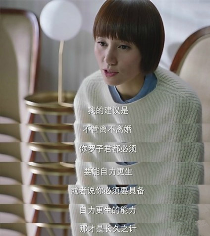 羅子君,馬伊琍扮演。羅子君嫁給陳俊生放棄了工作,放棄本身的夢想,因為陳俊生給她承諾說會養(yǎng)她一輩子,給她最好的生活,她以為從此就安枕無憂了,果斷選擇了家庭主婦,天天圍著老公孩子轉。每天跟老公交流的也就是孩子和家庭瑣事,精神上根本產生不了共鳴,最后老公愛上了另外女人,等待她的是“離婚”兩個字。