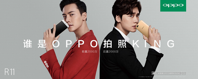 R11 前置 2000 萬美顏自拍;另一邊則是顏值滿分的李易峰,代表的是R11 后置 2000 萬超清雙攝,在上海人民廣場地鐵站“現(xiàn)身”,上演著一紅一黑的隔空站隊?wèi)虼a。