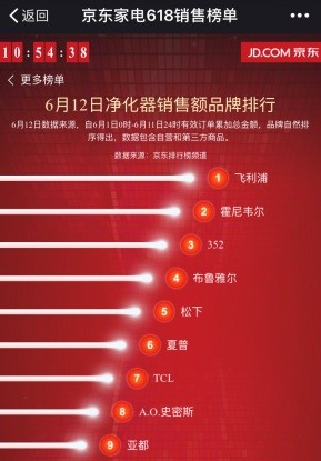 從 6 月 1 日,京東家電 618 銷量排行榜推出以來,排在空氣凈化器品類前六位的有 5 個是霍尼韋爾、夏普、飛利浦這樣的國外品牌,唯一的例外是352。從去年雙十一到本年618,這個誕生時間并不長的國產(chǎn)空氣凈化器品牌,始終牢牢占據(jù)著榜單前五中的一個位置,穩(wěn)如磐石。