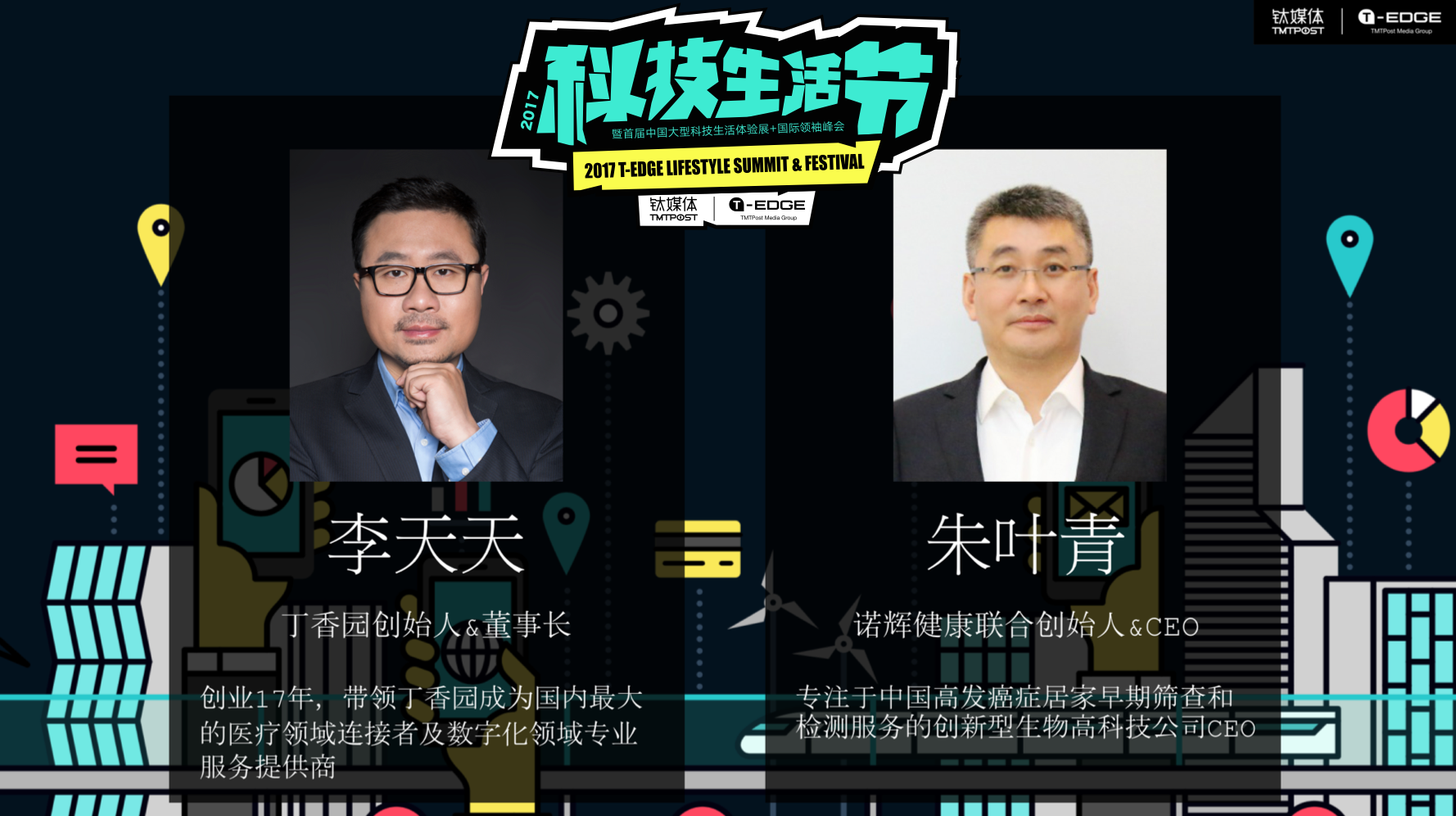 在之前的預(yù)告中,我們介紹了對(duì)記錄、實(shí)踐美好生活有不懈追求的范致行、黑羽和徐建軍;以及通過(guò)個(gè)性美妝和獨(dú)特花語(yǔ),不停追逐生活幸福感的張沫凡和朱月怡。今天我們介紹的即將參加鈦媒體2017T-EDGE科技生活節(jié)的嘉賓,是兩位專(zhuān)注于幫手醫(yī)生實(shí)現(xiàn)價(jià)值、幫手用戶(hù)解密身體密碼的互聯(lián)網(wǎng)醫(yī)療領(lǐng)域的創(chuàng)業(yè)者:一位是創(chuàng)業(yè)17年,純粹做醫(yī)療的丁香園創(chuàng)始人&董事長(zhǎng)李天天,一位是想努力預(yù)防癌癥的諾輝健康聯(lián)合創(chuàng)始人&CEO朱葉青。