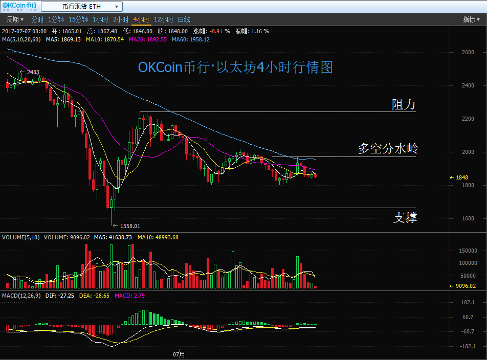 按照國內(nèi)知名的數(shù)字資產(chǎn)交易平臺OKCoin幣行的數(shù)據(jù)顯示, 6日,幣行以太坊開盤價(jià)1832.25,,最高價(jià)1974.15,最低價(jià)1814.51,收盤報(bào)于1861.00.截止收盤上漲1.57[%],振幅8.80[%]。今日以太坊開盤價(jià)1861.00,平開。