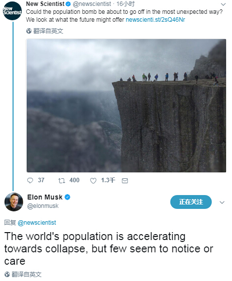 【TechWeb報道】7月7日消息,特斯拉CEO埃隆·馬斯克稱,,世界人口正在加速走向瓦解,但看起來幾乎沒有人注意到或關心。