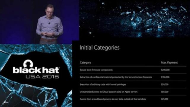 蘋(píng)果在去年的黑帽大會(huì)上正式推出了捉蟲(chóng)項(xiàng)目,,起初該項(xiàng)目最高賞金達(dá) 20 萬(wàn)美元,但還沒(méi)進(jìn)行多久賞金就降到了 10 萬(wàn)美元,有的漏洞賞金則只有2. 5 萬(wàn)美元。