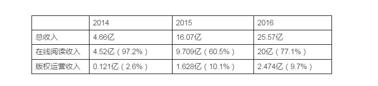 7月3日,閱文集團在港交所披露招股書顯示, 2016年營收26億,凈利潤達到3040萬元,其中在線閱讀業(yè)務(wù)營收達到77.1%。這可謂是突飛猛進式的增長,要知道2015年閱文還虧著3.54億。