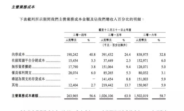 招股書顯示,2014-2016年,閱文的內(nèi)容成天職別占到主營業(yè)務(wù)成本的40.8%,24.4%和32.8%,并沒有呈現(xiàn)逐年下降趨勢,可見想做老大沒那么容易,和視頻網(wǎng)站一樣,燒錢才是硬道理