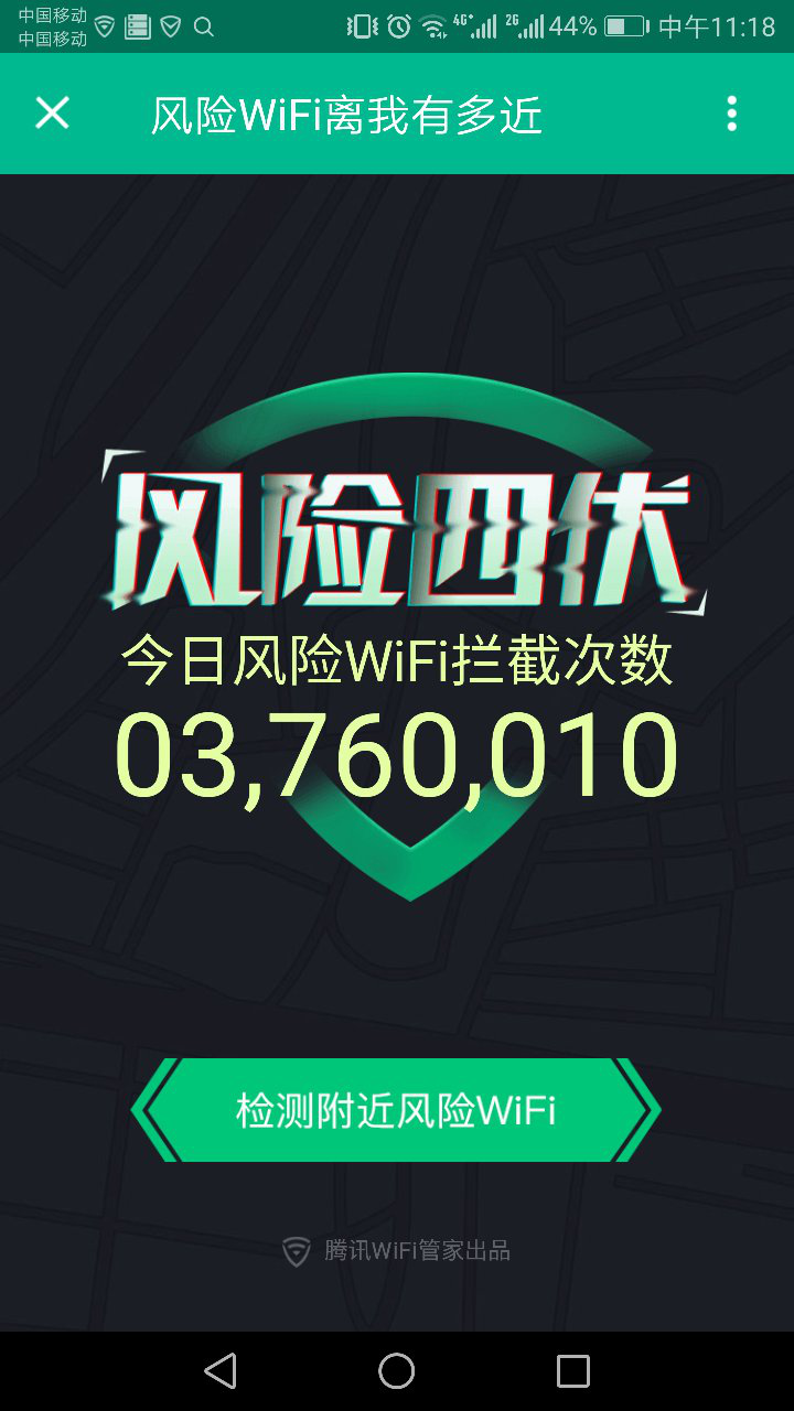 (圖:騰訊WiFi管家支持一鍵檢測附近的風險WiFi)