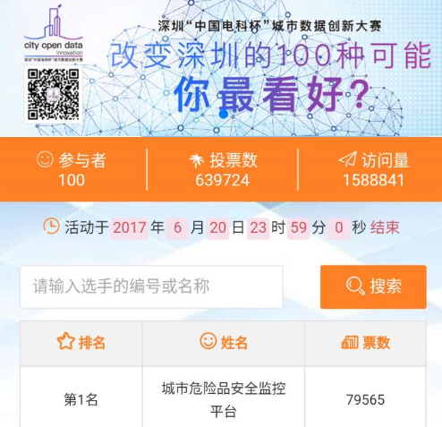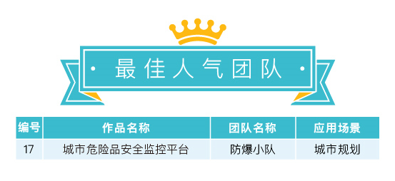 基于在“改變深圳的100種可能”百強人氣之最票選活動中的上佳表示,防爆小隊(項目:城市危險品安適監(jiān)控平臺)獲得“最佳人氣團隊”殊榮,將一同參加項目路演及現(xiàn)場頒獎。