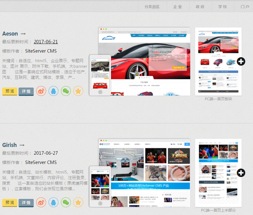 此次上線的響應(yīng)式模板中心(templates.siteserver.cn)和之前的模板中心(templates.siteserver.cn)比擬有什么特色呢?