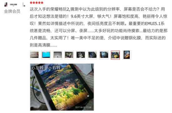 榮耀暢玩平板 2 目前已在華為商城、京東榮耀官方旗艦店及天貓榮耀官方旗艦店熱銷 1 月有余,按照廣大消費(fèi)者反饋,系統(tǒng)流暢、內(nèi)存夠大、做工好顏值高、續(xù)航滿意更是占據(jù)好評(píng)金字塔最上峰。尤其是針對(duì)2GB+16GB、3GB+32GB的內(nèi)存搭配,不少用戶體現(xiàn)實(shí)際使用起來,甚至覺得比官方聲明的內(nèi)存配置更充足,非常驚喜。