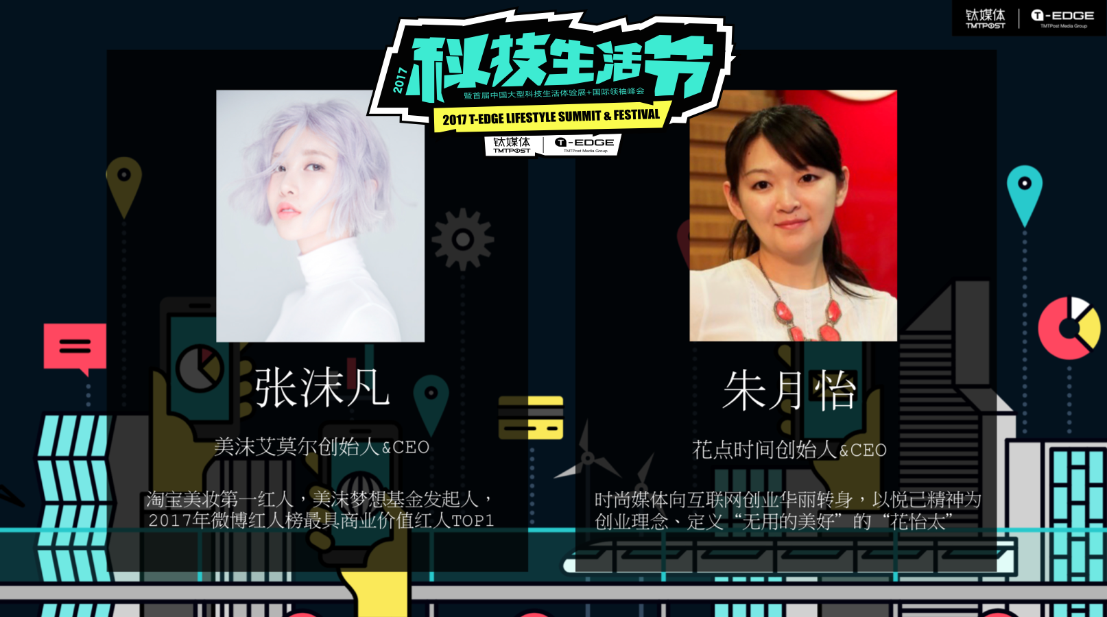 在之前的文章中,我們介紹了為精彩生活提供獨(dú)特設(shè)計視角的夏焱和范凌,今天我們介紹的即將參加鈦媒體2017T-EDGE科技生活節(jié)的嘉賓,,就是為都市女性帶來幸福秘訣的互聯(lián)網(wǎng)平臺的創(chuàng)始人,一位是為斑斕和夢想發(fā)聲的美沫艾莫爾創(chuàng)始人&CEO張沫凡,一位是滿足女性追求幸福歸屬感的“花點(diǎn)時間”的創(chuàng)始人&CEO朱月怡。