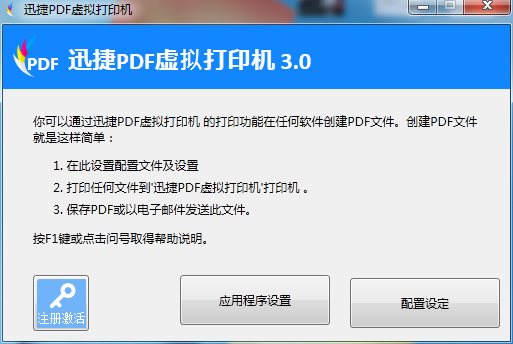 一、下載安置迅捷PDF虛擬打印機(jī),安置成功后打開運(yùn)行軟件,在彈出的提示窗口中,單擊“配置設(shè)定”進(jìn)入。