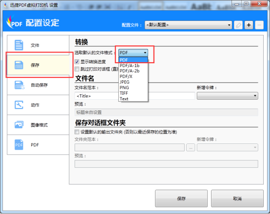 三、進(jìn)入生存后,在轉(zhuǎn)換下面,拔取默認(rèn)的文件格式一欄下拉,選擇PDF格式。