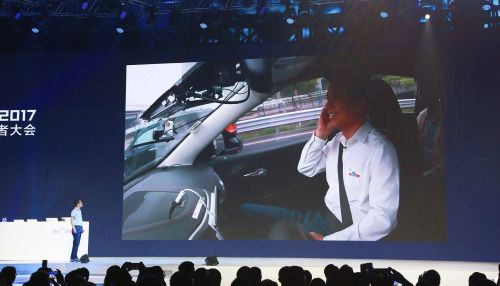 李彥宏乘坐無人車來到會(huì)場(chǎng)