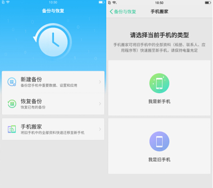 每次換手機,舊資料的傳輸總是讓人頭大。幸虧有“手機搬場”功能,不但支持安卓,還支持蘋果。其實在ColorOS 3. 0 上就已經(jīng)有這個功能,ColorOS