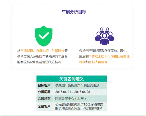 2) 極光大數(shù)據(jù)實(shí)時(shí)監(jiān)測(cè)參不雅觀新能源汽車展臺(tái)客戶的移動(dòng)終端,對(duì)目標(biāo)客群的畫像分析和線下看車行為特征進(jìn)行分析,全面評(píng)估會(huì)展?fàn)I銷效果