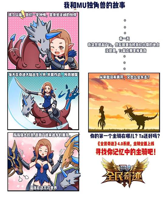 近日,某微博大V發(fā)出了一張與《奇跡MU》中的獨(dú)角獸一起戰(zhàn)斗的條漫,勾起了不少網(wǎng)友的奇跡記憶。印象中的獨(dú)角獸總是給人一種神圣、純潔、傲岸的感覺,是無數(shù)人英雄夢與俠客幻想之中不成或缺的元素之一??吹竭@組漫畫后,你是否想到了當(dāng)年屬于本身的坐騎了呢?《全民奇跡》4. 0 新版本帶來了全新的戰(zhàn)斗模式,你是否已經(jīng)鎖定好心儀的坐騎準(zhǔn)備奮戰(zhàn)一番了呢!