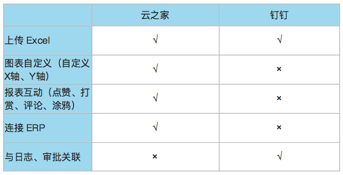 在連接ERP方面,云之家是「報表秀秀」,釘釘是「智能報表」。