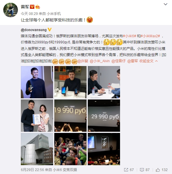 巨人網(wǎng)絡(luò)通訊聲明:本文標(biāo)題《小米6俄羅斯發(fā)布 本地人怒贊:第一次見(jiàn)如此高性?xún)r(jià)》,本文關(guān)鍵詞 小米,俄羅斯,發(fā)布,本地人,;如發(fā)現(xiàn)本文內(nèi)容存在版權(quán)問(wèn)題,煩請(qǐng)?zhí)峁┫嚓P(guān)信息告之我們,我們將及時(shí)溝通與處理。本站內(nèi)容系統(tǒng)采集于網(wǎng)絡(luò),涉及言論、版權(quán)與本站無(wú)關(guān)。