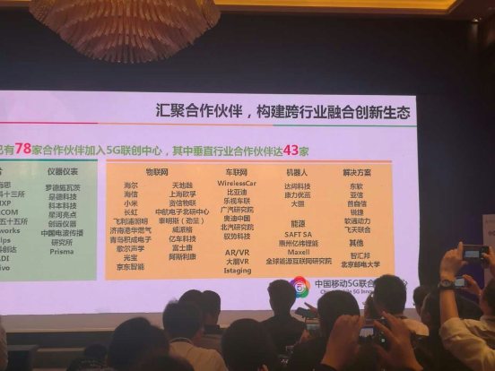 ▲中國移動研究院無線院副院長楊光介紹,5G聯(lián)創(chuàng)中心目前已有78家企業(yè)加入,其中垂直行業(yè)公司達43家。
