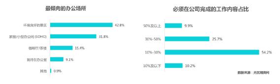 僅有9.1%的人選擇待在公司辦公室辦公,除了個人偏好影響之外,很可能是因為他們的工作內(nèi)容在很大程度上必須在公司完成。據(jù)調(diào)查顯示,近 4 成的職場精英表示自己有30%以上的工作內(nèi)容是必須在公司完成的,甚至有10%的精英表示自己有50%以上的工作內(nèi)容務(wù)必在公司才能完成。