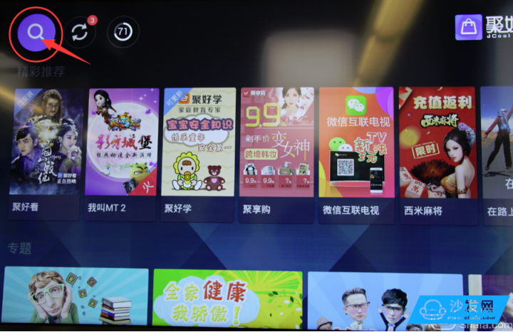 2. 打開海信電視的官方應(yīng)用市場《聚好用》并點(diǎn)擊箭頭所指位置進(jìn)入。
